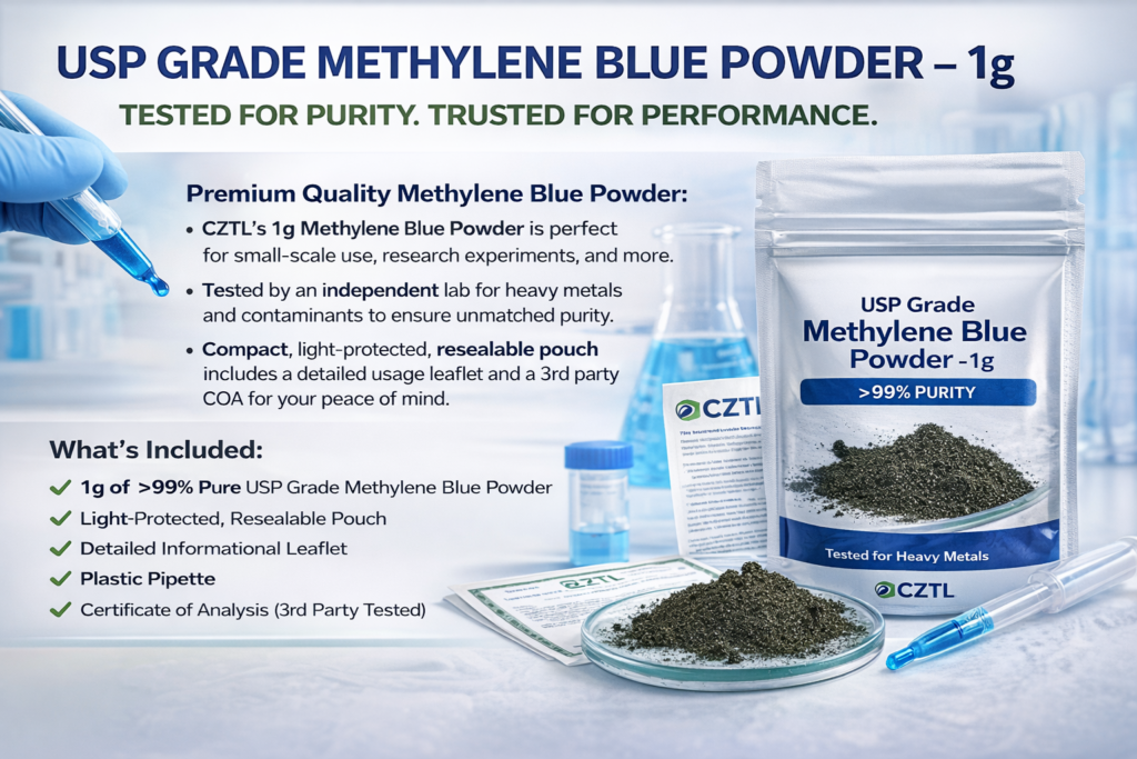Why CZTL ? - USP-Grade Methylene Blue Powder — Verified Purity You Can Trust - Independently Tested for Purity, Heavy Metals, and Contaminants — Fully Documented